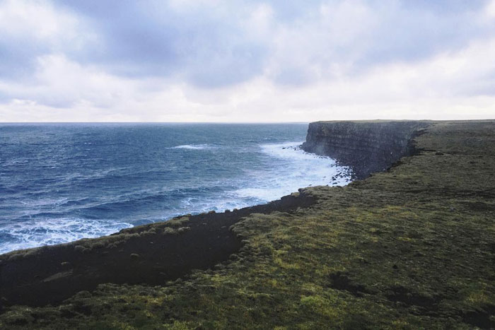 Next day rain, fog, and mist prevailed, so there was much whist-playing and smoking below, and much blowing of whistle above. Towards evening we were off the coast of Iceland; the land was not visible, for we were enveloped in fog, but there was no doubt about it, for we could hear that land was not far distant. It may seem strange, but it was a fact, we were really feeling our way along the coast by the aid of the steam-whistle. The land thereabouts rises abruptly from the sea, and the echoes from the sheer faces of rock enabled the officers of the vessel to judge their distance. We went dangerously near to another vessel in the fog, but soon afterwards it cleared off a bit, and there, just abeam on the starboard side, was the other vessel, sufficiently close to be a dangerous neighbour in thick weather. At midnight we were going full speed ahead, but when I awoke at seven in the morning it was to find that our experiences of fog were not at an end, that we were again in a very dense one, and that we were lying-to. After breakfast it lifted sufficiently to allow of a course being shaped for Northfjord, our first port of call in Iceland. Much of the scenery of this fjord was obscured by the thick atmosphere, but occasional glimpses through rifts proved that we were missing many fine scenes that are on view when the conditions are favourable. The first sight of Iceland was obtained at Dalatangi Point, four or five miles to the north of the entrance to Northfjord. In the fog we had gone too far north. Other glimpses on the way were of a corrie near Dalatangi, and the face of the mountains near Mjofifjord. Our stay at Northfjord was of but short duration, and there was no time to go ashore, so the only view we had of the town was obtained from the vessel's deck.